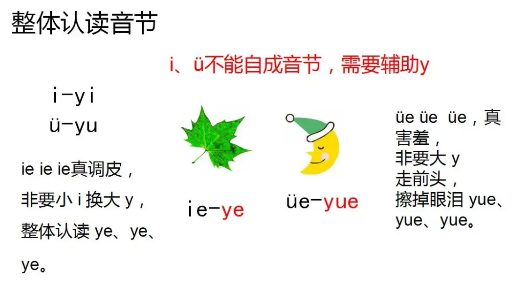 2.ie是复韵母,不能当音节用,要和声母在一起才能组成音节。ye是一个整体认读音节,直接用来表示一个字的读音,整体认记,不能和其它声母组成音节。