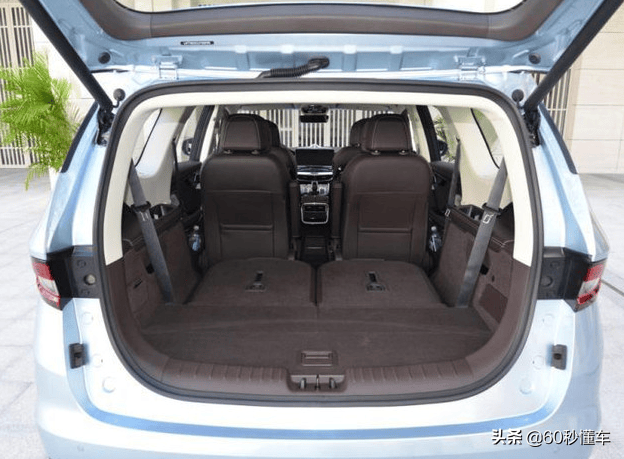 在后备箱上,GM6采用了独特的”魔术空间”设计,也就是通过调节第三排座椅,扩充后备箱容积。在第三排座椅不动的情况下,后备箱容积可达324L,能够轻松放置4个20寸的拉杆箱;将第三排座椅完全放倒翻转至地板之后,后备箱容积可达1100L,可以放下14个20寸的拉杆箱,如果累了在后排躺着休息,也完全没问题。