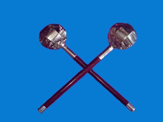棒 棒长约五尺,以坚韧白蜡木制之。棒身两端粗细不一,一端粗可盈把,此端是握手处。往上愈细,顶端粗为八寸。