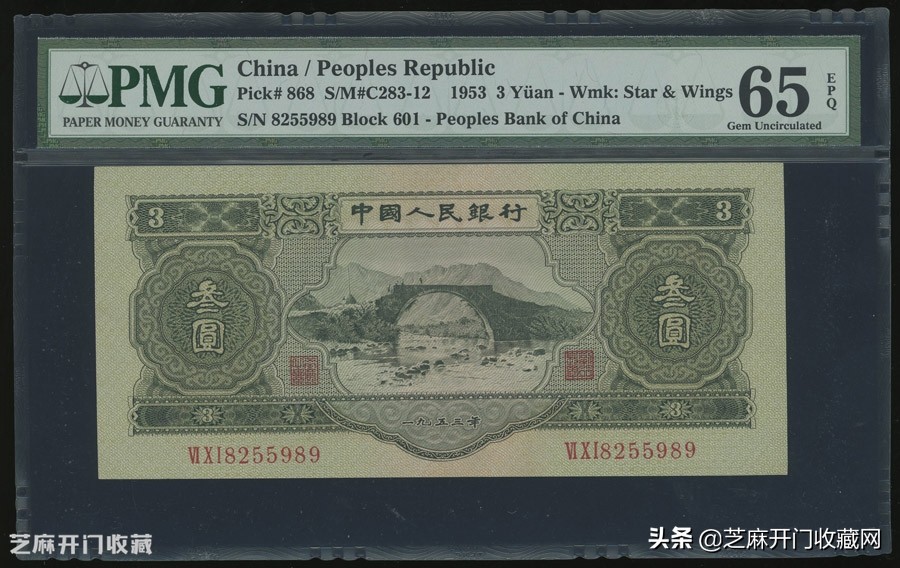 2:1953年二版币叁圆 PMG Gem Unc 65 EPQ ,估价: HKD 260000 – 360000,成交价格: HKD 480000