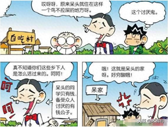 这天,呆头带旺财和贝有钱来到家里参观。刚到白吃村门口,贝有钱就嘲笑原来呆头住在这样一个鸟不拉屎的地方,旺财心想贝有钱真是个讨厌鬼。贝有钱不愧是备受众人讨厌的有钱公子,又笑话呆头说真不知道你们这些乡下人是怎么活过来的。等看到了呆头家的房子,更是说这也太穷酸了吧,旺财已经很生气了,呆头可是他的朋友,贝有钱居然一直笑话。