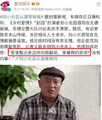 刘小光因为饰演《乡村爱情》系列里的赵四出名,8月初他被曝酒后驾驶,"刘小光酒驾被罚"也传了出来,不过本山传媒回应称这是谣言,他本人也很惊讶:"是谁整出来这样的假新闻?"澄清了自己酒驾的传闻。