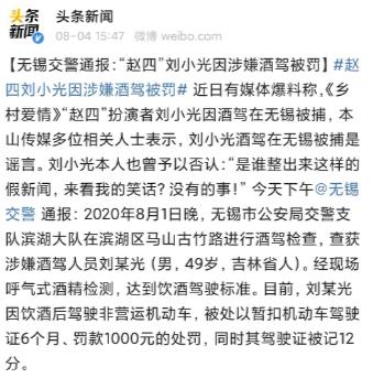 随后,头条新闻也转发该动态,并实锤了刘小光涉嫌酒驾被罚,也有网友表示刘某光指的就是刘小光的原名刘建光。所以,刘小光涉嫌酒驾后的影响还是蛮大的。