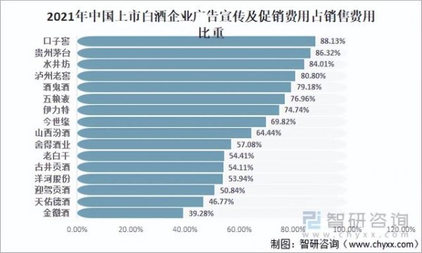 2021年中国上市白酒企业广告宣传及促销费用占销售费用比重