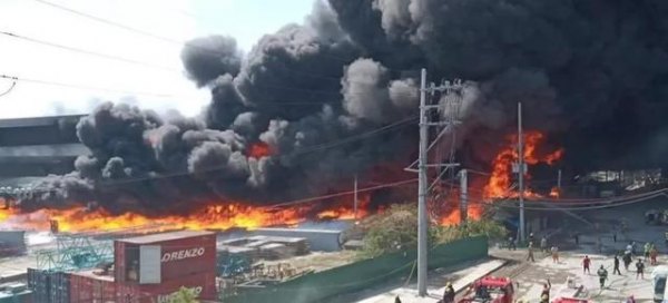 马尼拉生力啤酒仓库着火,高架桥烧塌了