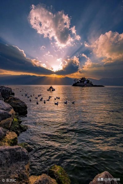 洱海名扬四方,湖水清澈见底,映影天空月亮,吸引无数游客。