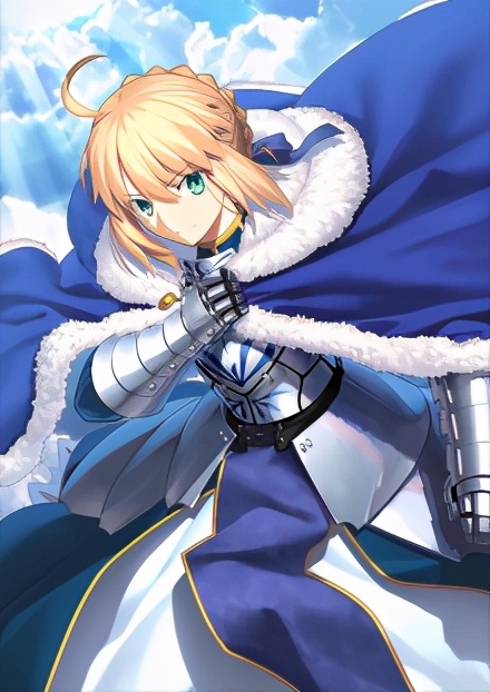 宝具『誓约胜利之剑(Excalibur)』,这并非人造的武器,而是由星锻造而成的神造兵器。立于圣剑顶点的宝具。拥有真正强大力量的应是剑鞘,而不是剑本身,但剑鞘据说已经永远遗失了。