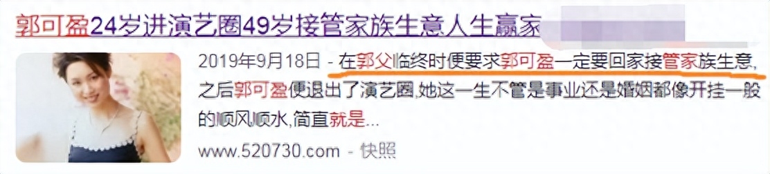 2011年郭父去世,生前遗愿就是让他最看重的二女儿郭可盈掌管家业。