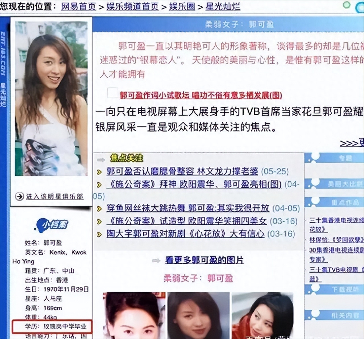 还曝郭可盈曾在恋爱期间,移情李克勤,插足别人感情(李克勤当时有女友卢淑仪,后来俩人结婚了)。
