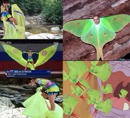 当索特尼科娃穿上形如动物的表演服装时,韩国网友们就把她p成“蛾子”…