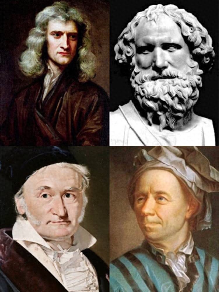 对于数学史上最牛的四位数学家:阿基米德、牛顿、欧拉、高斯,有人认为是高斯最厉害,有人觉得是欧拉,在你们心目中,最伟大的数学家是哪位呢?欢迎交流。