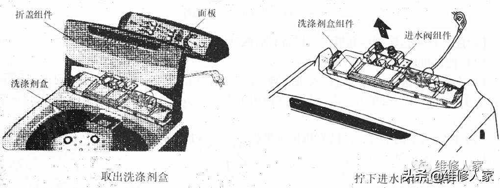 (9)进水阀组件与洗涤剂盒组件的拆卸