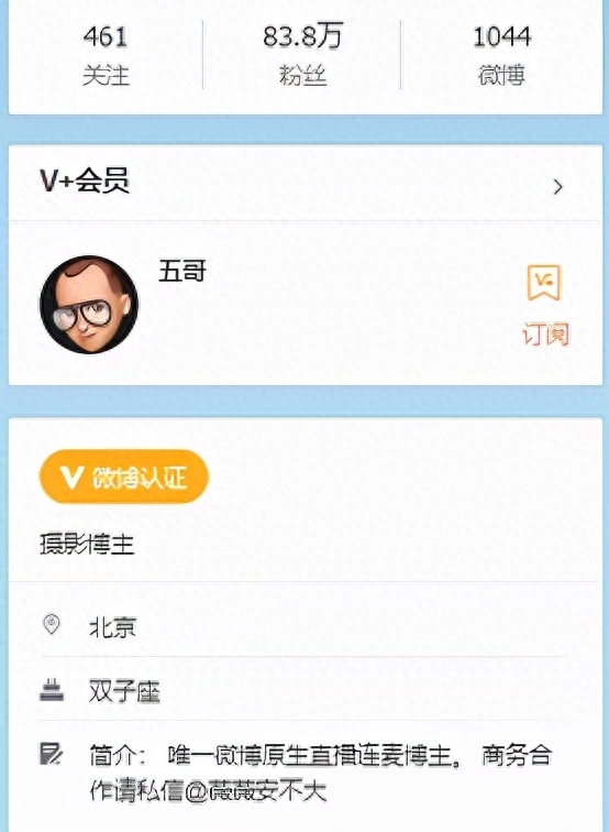 在微博简介上写着,“唯一微博原生直播连麦主播”的五哥,其实是位专职摄影师。在二月份注册微博之前,他一直在全球各地做专职摄影师,疫情让他停下了不断外出的脚步,倒是在线上做起了连麦直播,凭借专业的摄影知识输出,积累了大量的粉丝关注。