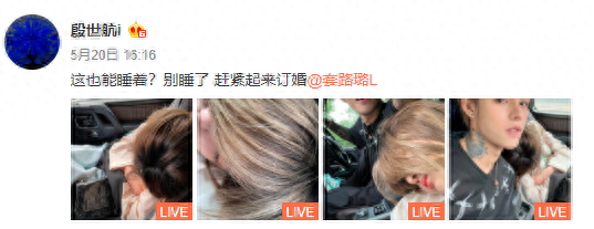 殷世航在520当天发了一组照片,调侃套路璐让她起来订婚。