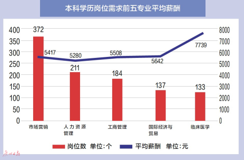 昨日,南方配置大数据中心联合广州市高校毕业生就业指导中心发布《2019广州高校毕业生需求报告》显示,无论是大专学历还是本科学历,岗位需求最多的都是市场营销专业,而精神医学专业成薪酬最高的专业之一。
