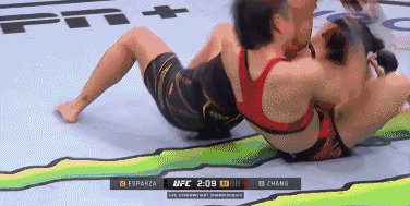 第二回合,卡拉埃斯帕扎继续准备用地面站决出胜负。她一个抱腿抓住了先手,似乎拿到了先手,但是张伟丽沉着冷静,借力打力,反而在地面战中占据有利位置。