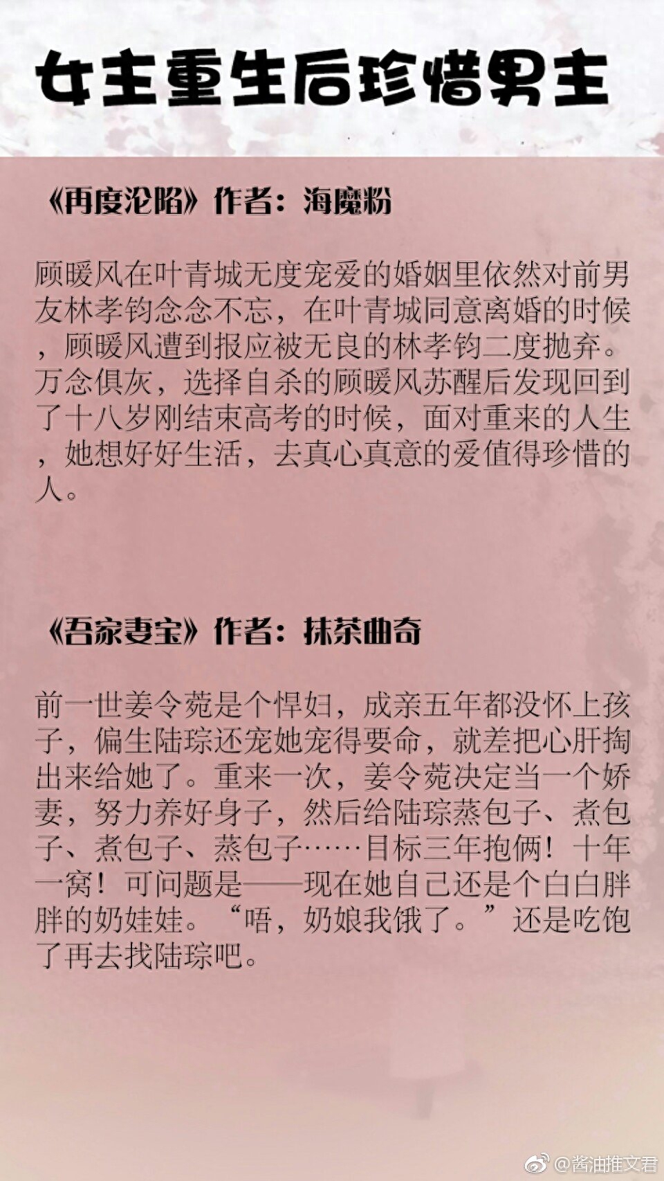 18本经典好看女主重生后珍惜男主文,吾家妻宝,双归雁,哑妻