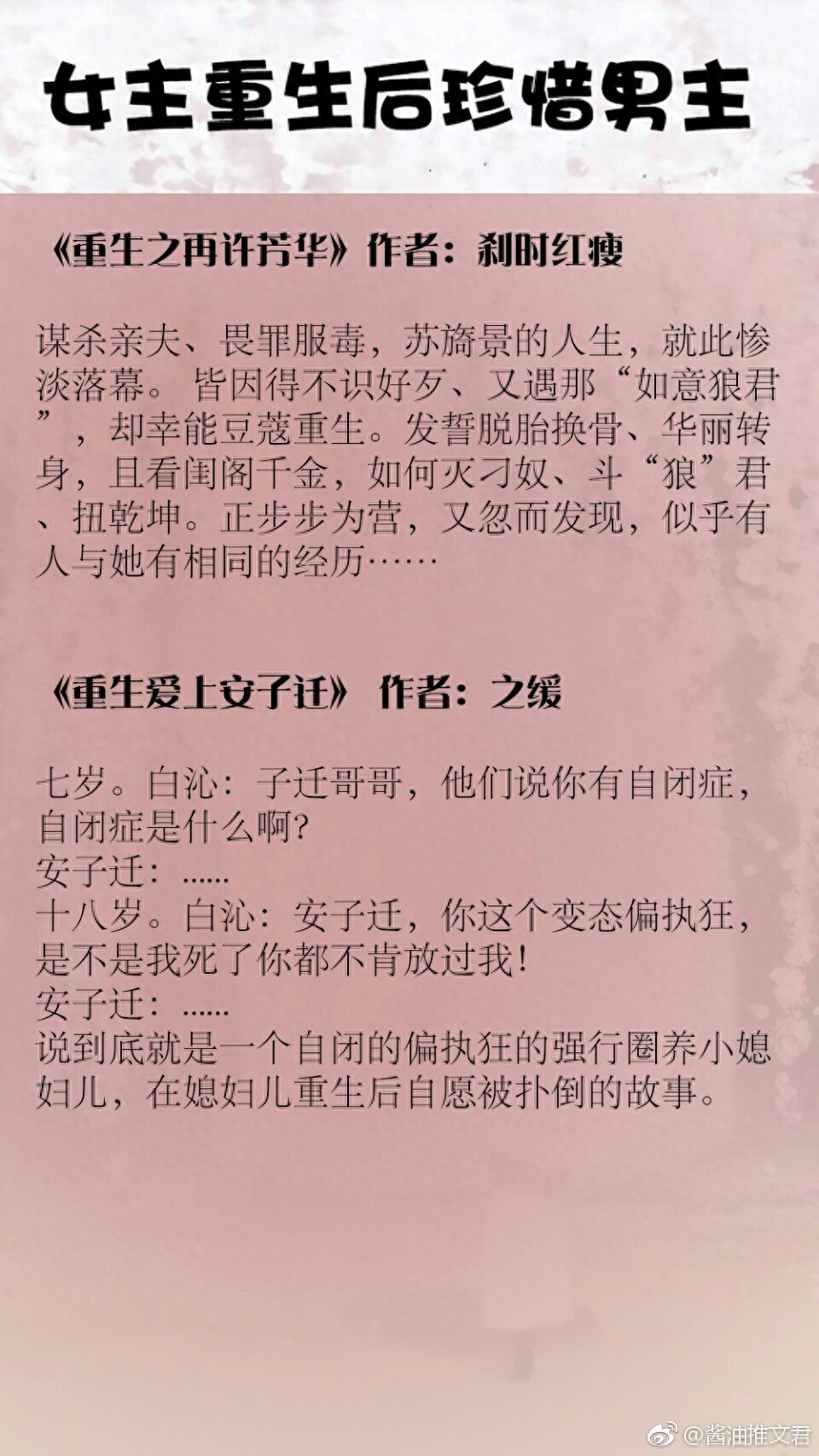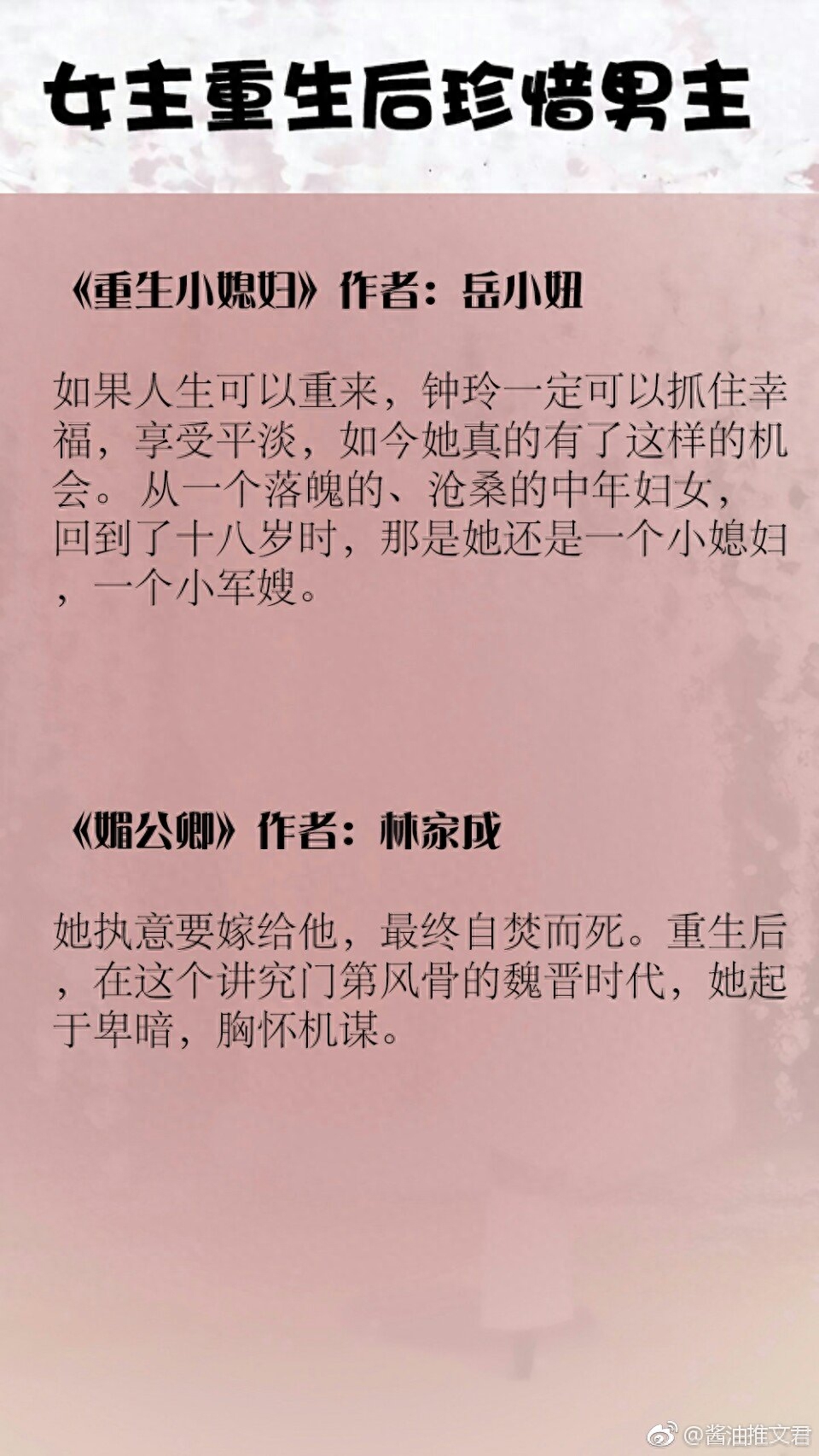 今天为小伙伴们带来18本经典优质好看的女主重生文,女主重生后醒悟到自己爱上了前生深情的男主,今生决定远离渣男,奔向男主的怀抱,更加珍惜男主的爱情故事。