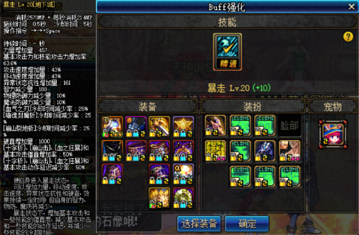 以前没有Buff登记系统,2套换装需要时间,所以很多玩家不想花时间去切换装备,而如今暴走不需要进图切换,我们只要再做一套永生换装就跟之前的暴走换装一样,进图换一次加上嗜血即可,200点的力量加成是8件增幅7的装备,对普通玩家来说是不错的提升量了。
