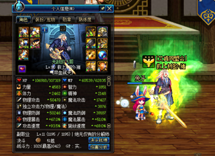 刀魂之卡赞改版后不能TP,但是我们还是可以点这个红阵进行换装的,红阵换装需要偷学技能【封印解除】来提升范围,并且可以利用夜叉王3件套和领域三件套加成,剩下用等级堆积装备去堆就好,在18级的红阵等级,异界套换装后,在红阵里的红眼力量达到了5269点。