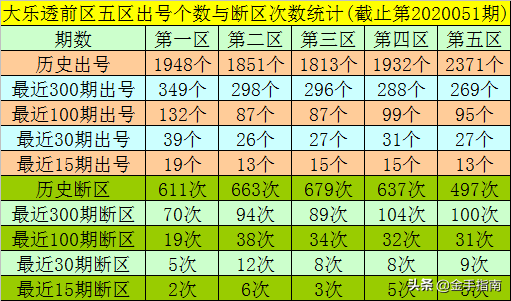 齐天王大乐透第2020052期前区五区奖号分析: