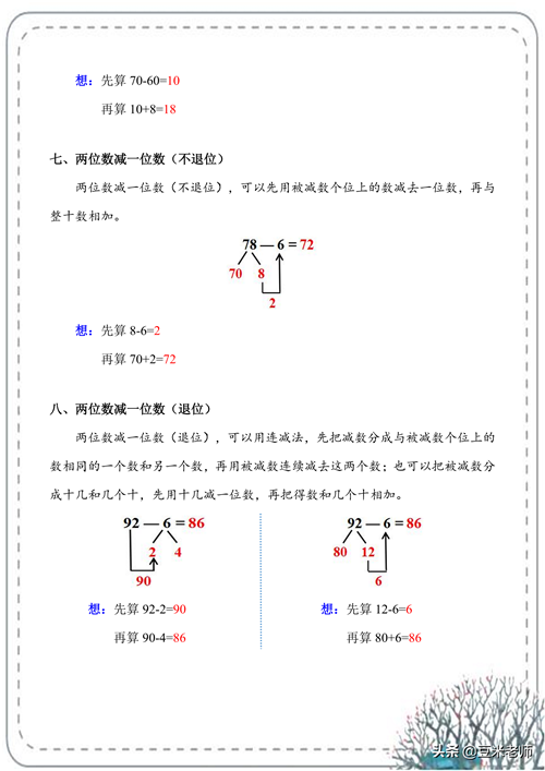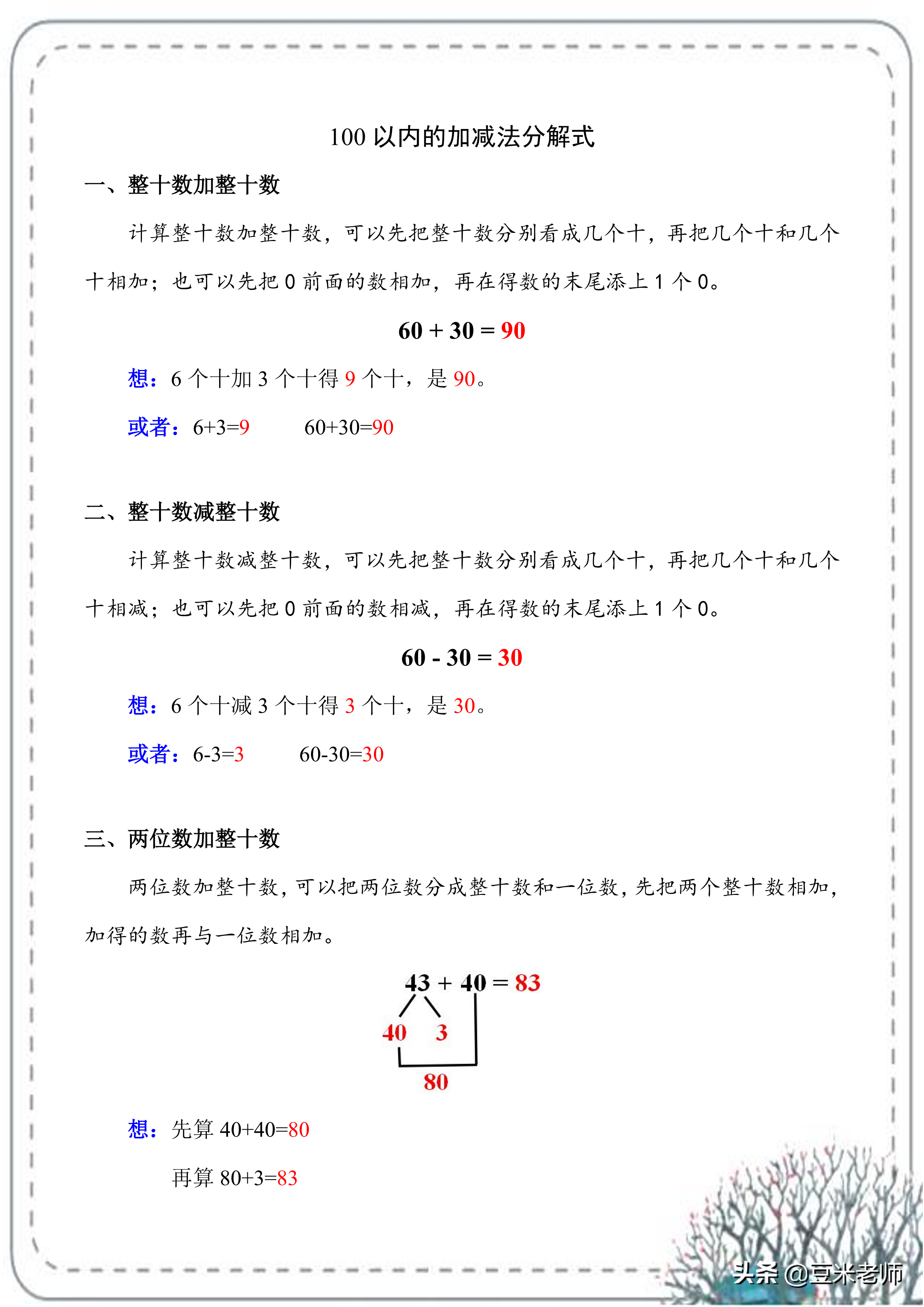 一年级数学下册:100以内加减法凑十法、破十法、借十法分解式