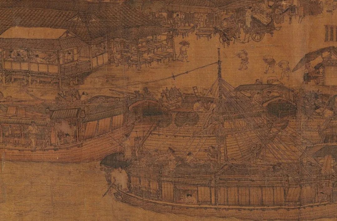 《清明上河图》中漕粮码头附近店肆盛张的热闹场景。