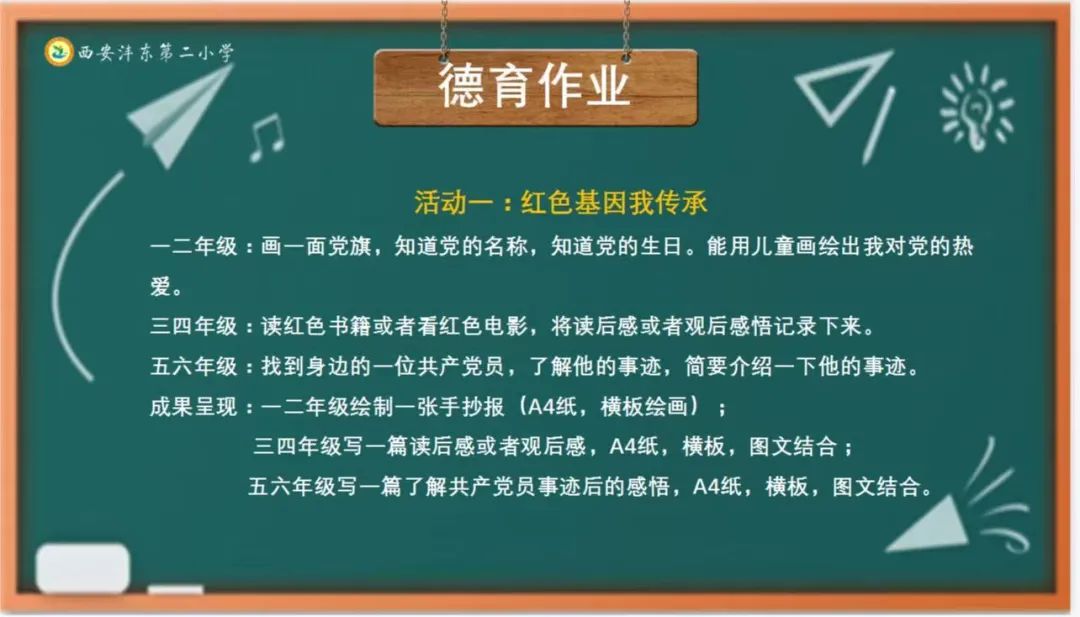 成果呈现:一二年级绘制一张手抄报(A4纸,横板绘画);