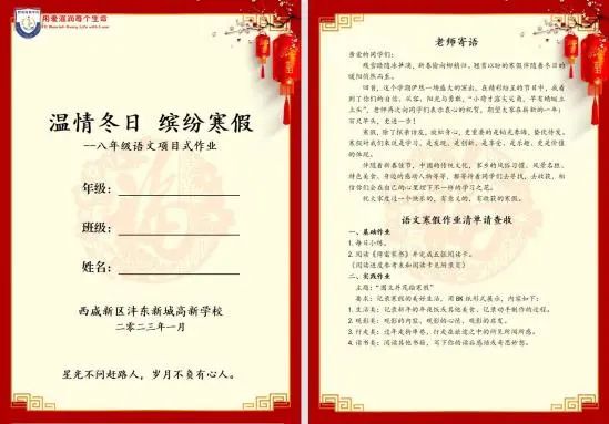 多层次、多维度的特色作业,使每一位学生在假期中都能得到有效的提升和发展,让孩子们寒假生活丰富而有趣。