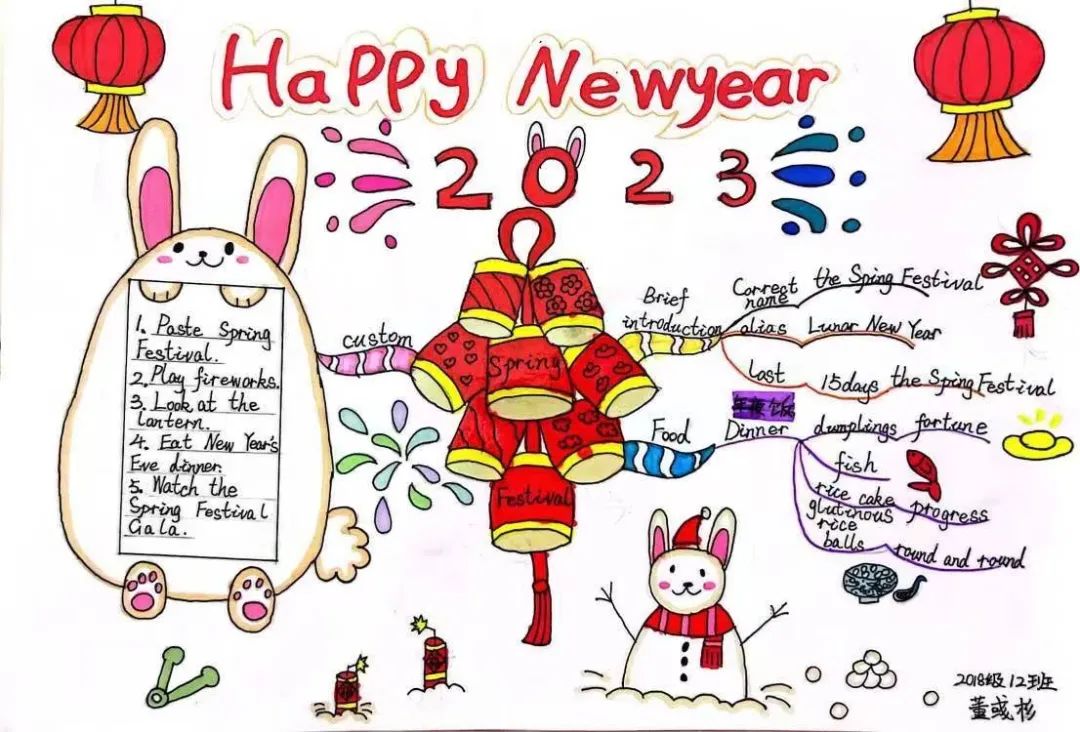 2.三四年级:用A4纸画一张兔年年画作品或节日祝福手抄报,跟自己的作品合影。