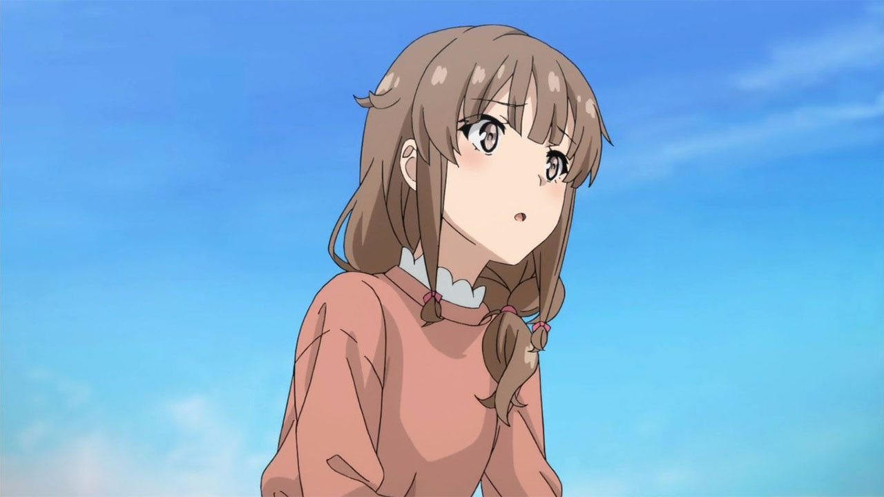 时而强势的麻衣,跟咲太发展成恋人关系后,常常对咲太等周围人展露出温柔的一面。同父异母的妹妹——和花《青春期症候群》发病时,跟麻衣发生了身体对调。很担心和花能不能饰演好人气女优麻衣的身份,麻衣就让咲太去看看情况。此外,为了咲太的妹妹枫,麻衣还给了她摄影时穿的可爱衣服,麻衣开始关心体贴起其他人来。麻衣与咲太的相遇,让麻衣在人性懂事方面有了巨大的成长。