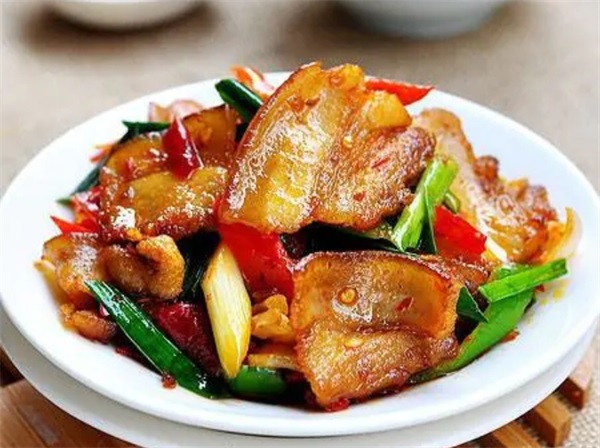 回锅肉是四川十大经典名菜之一。制作原料主要有猪后臀肉(二刀肉)、青椒、蒜苗等,口味独特,色泽红亮,肥而不腻。回锅肉一直被认为是川菜之首,四川的家庭几乎都会做这道菜。之所以叫回锅肉,是因为五花肉加香料用水煮熟之后,冷却切薄片,下油锅爆香,加入青蒜、葱、姜、蒜、干红辣椒、花椒、豆瓣酱、糖、油等调味,厨艺好的师傅,能把肉片熬制成一个一个的卷窝形状,俗称"灯盏窝",猪肉里面的肥油炒出,焦脆鲜香,肥而不腻。