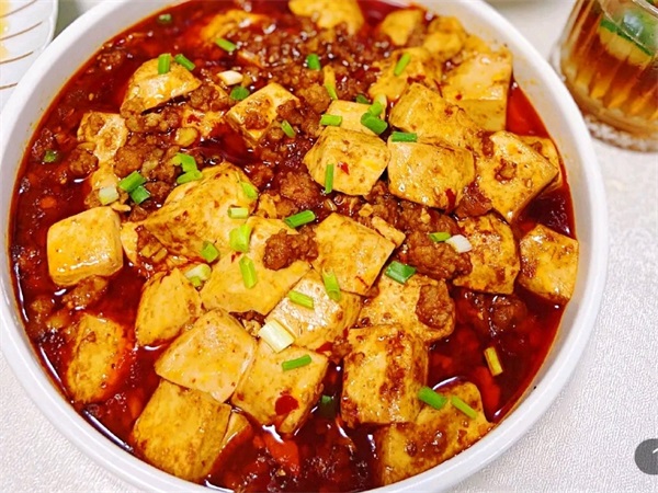 麻婆豆腐也是各川菜馆必备的一道菜,主料为豆腐,辅料为蒜苗和牛肉末,用豆瓣酱、辣椒面、花椒、酱油、生抽、老抽、糖、淀粉等调味,口味集麻、辣、鲜、香、烫、脆、嫩、酥为一体,虽然食材普通,但是麻婆豆腐已经成为闻名世界的国际名菜。麻婆豆腐也是四川十大经典名菜之一。