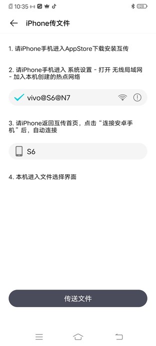 只要手机上装有vivo 互传,就可以在Android和Android手机之间传输文件。两部手机打开互传连接后,一键即可传输文件:应用程序,图片,媒体,联系人等。使用iPhone进行文件传输的操作也非常简单,只需按照图片所示进行操作,一切都会自然而然地完成。
