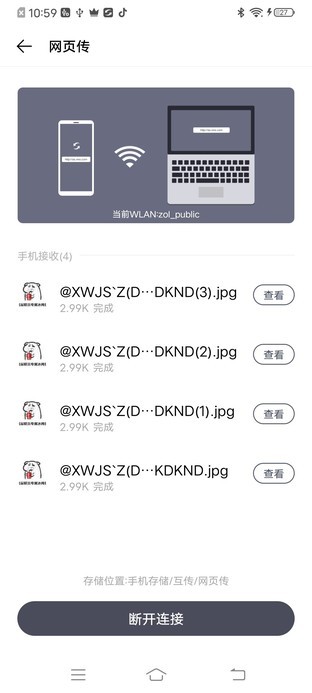 4.连接成功后,手机和pc端文件传输