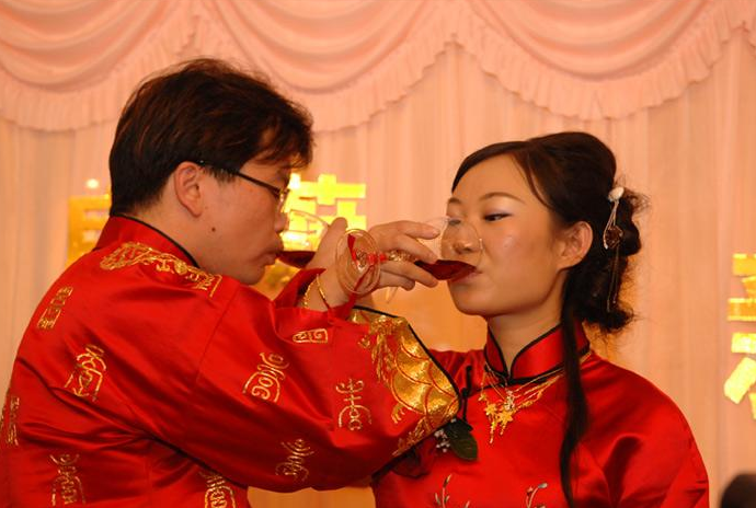 (喝交杯酒,婚礼中的“合卺之礼”)