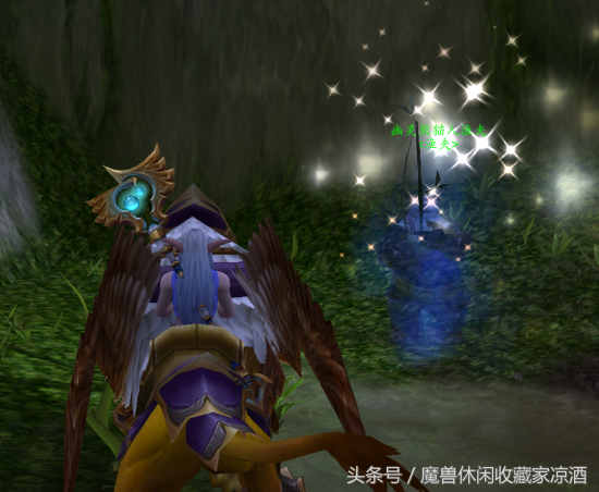 如果能看到他,那么恭喜你,你直接可以拿到玩具了,如果看不到这个幽灵熊猫人,那么就是你这个服务器的玩具被人拿走了,可以蹲守刷新,应该是12小时刷新,不想蹲可以跨服找找,去别的服务器建个100级试玩角色,直接炉石回奥格或者暴风城,传送翡翠林飞过来,试玩账号自带潘达利亚飞行(虽然现在潘达利亚不要求四风的智慧了哈),飞过来看到这里没有幽灵熊猫人就换角色去别的服务器再建试玩角色。