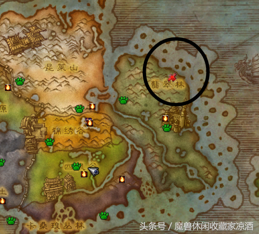 此时可以看到翡翠林的地图上被标记了一个红叉: