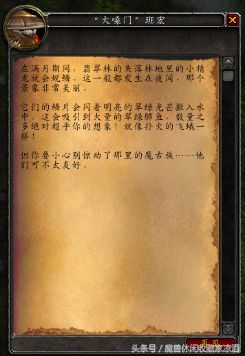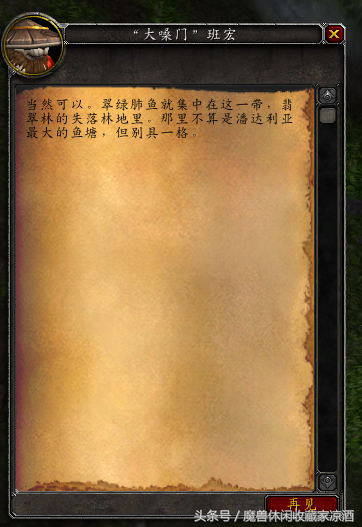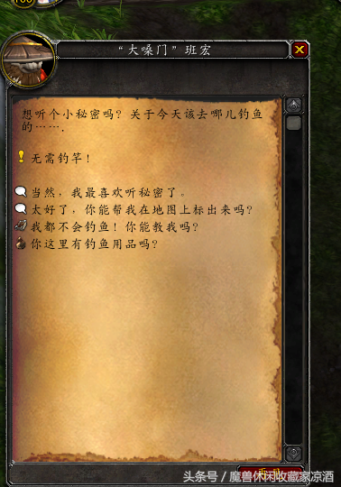 选择上图的“当然,我最喜欢听秘密了”,他就会告诉你去哪钓鱼比较好,比如凉酒今天被告知去翡翠林: