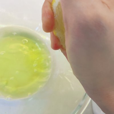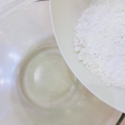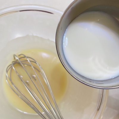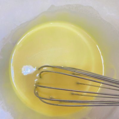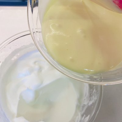 11、取1/3的蛋白霜放入蛋液中用翻拌的手法拌匀