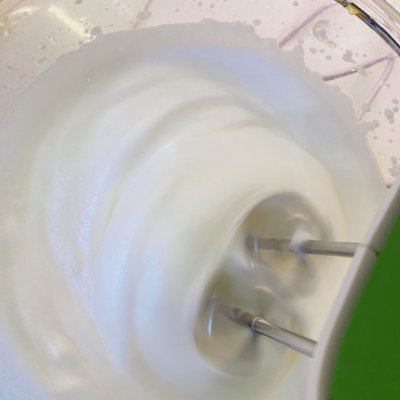 8、继续中高速打至更细腻的状态加入最后1/3的糖
