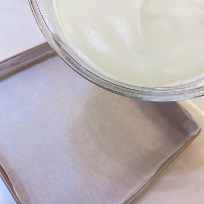 13、倒入到铺有烘焙纸的烤盘里(烤盘要先抹点油再放烘焙纸)