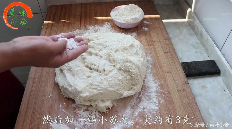 2、面团发好拉,可以看图片,整个和面盆里都撑满啦。开始揉面,往面里面加点小苏打进去,放小苏打蒸出来的花卷馍才又白又松软。