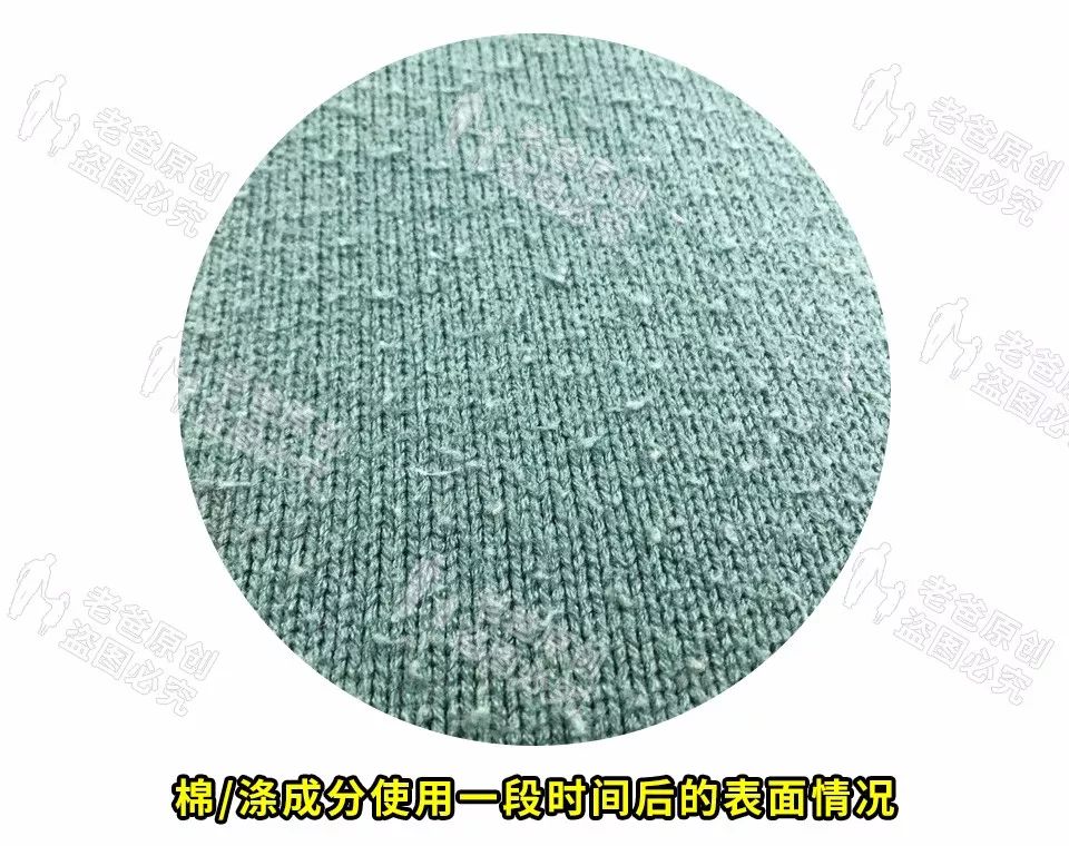 除此之外,常见的化纤短纤维(涤纶、锦纶、腈纶、丙纶、再生纤维素纤维),以及与其混纺的天然纤维(棉、麻、羊毛纤维等),较容易起毛起球。
