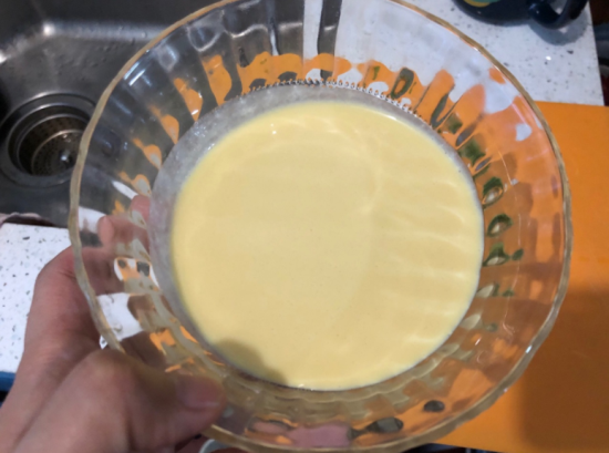 区别于真鸡蛋的外形,植物蛋没有蛋壳,是一种液体蛋,生产过程如下:将绿豆制作成粉,再加入消泡剂,调节溶液的PH值,经过提取后就能得到类似于蛋液的凝乳。这就是目前为止,完全无害,纯天然绿色食品制作的“人造蛋”。