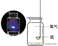 硫磺入氧燃烧旺,火焰蓝紫真漂亮;