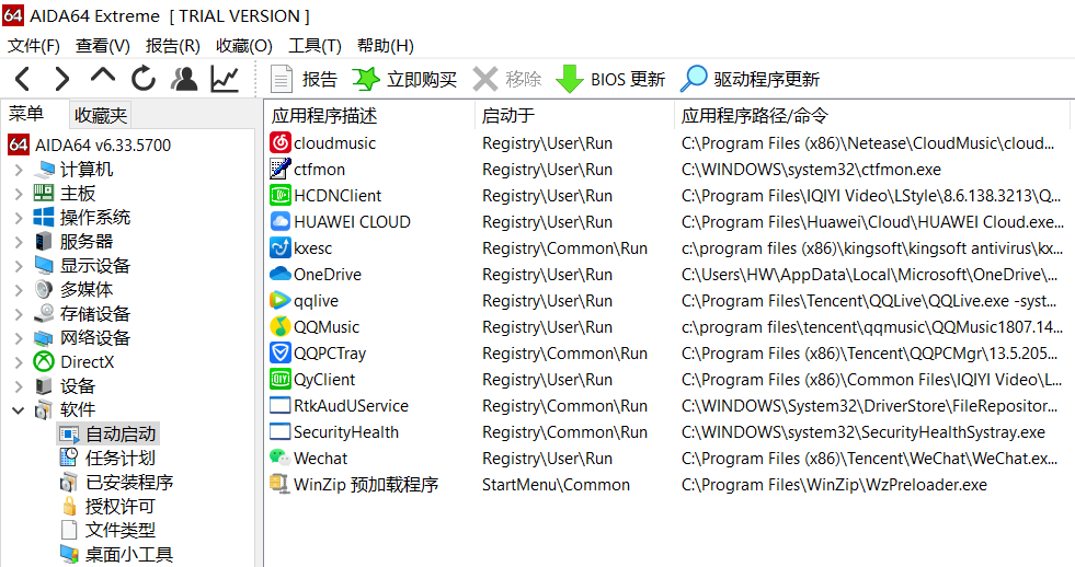 3.使用AIDA64查看自启动程序