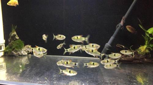 思来想去,我还是没敢把虎皮鱼放入马克吐司的鱼缸里,因为我的这些虎皮鱼已经有点年迈了,行动不是太迅速、个体又比较显眼,再一个就是虎皮鱼互相之间打斗的也很激烈,鱼鳍有点破破烂烂,在小杂鲷的鱼缸里已经是岌岌可危,更别说和马克吐司饲养在一起了,破烂的鱼鳍更是给了马克吐司可乘之机,所以最后想想,还是算了吧。
