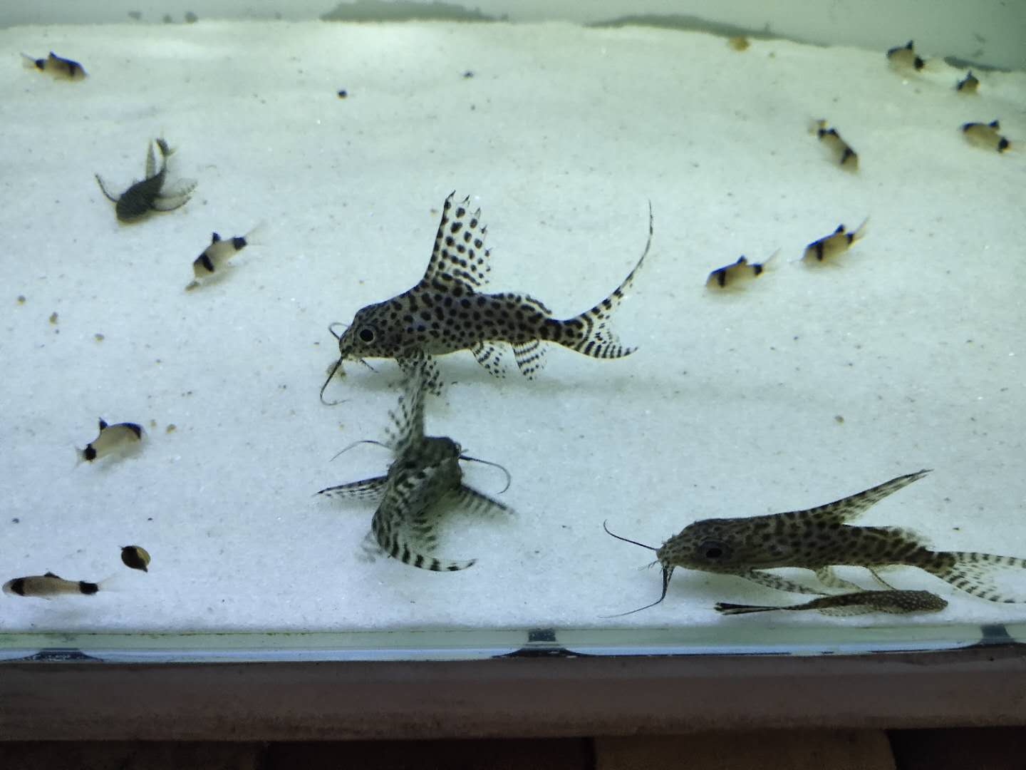 而最适合和它们混养的,就是这些异型鱼和鼠鱼了,目前看来是没有什么问题的,其他小型、中型观赏鱼,还是不要和马克吐司混养在一起为佳。