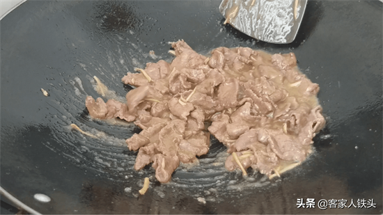 3、炒牛肉别怕牛肉不熟,基本牛肉变色后就差不多熟透了,再继续炒就会老了,这一步很关键。